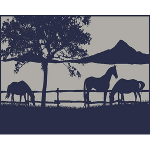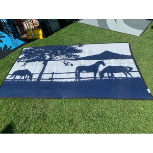 Love horses. This horse ranch mat is a favourite with horse lovers. Light grey and navy is great unique colour combination that is sure to stand out at your camp site.