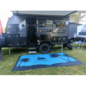 Blue and black looks great with so many setups. Check out the images of this awesome mat up against caravans.