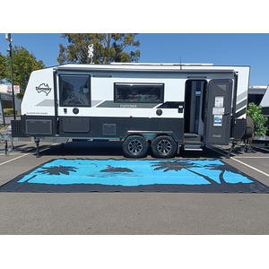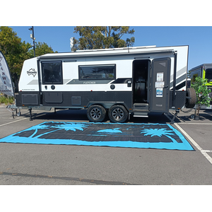 Blue and black looks great with so many setups. Check out the images of this awesome mat up against caravans.
