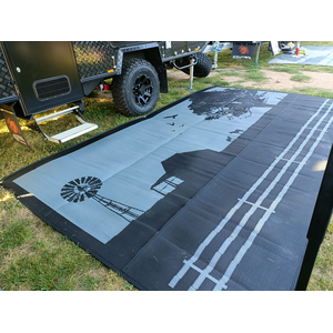 The country grey mat is a hit for those who love a picture mat that matches with every caravan. This image is a taken from a photo in the NSW Central west and is an awesome looking accessory to any camping setup.