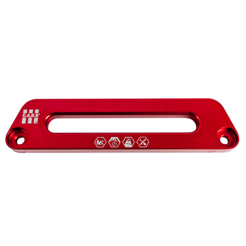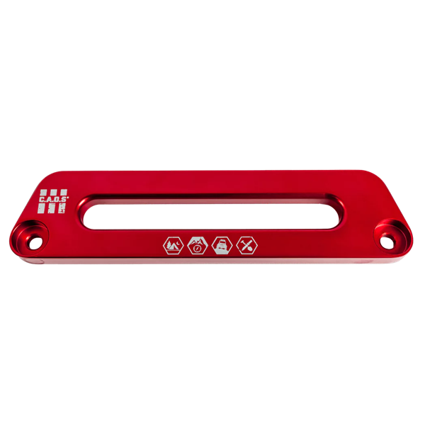 CAOS Fairlead Red, 1 Year Warranty. Ensure the maximum lifespan of your winch rope with the CAOS Aluminium Hawse Fairlead. A fairlead prevents damage and fraying to your synthetic winch rope as it passes through the bullbar during use. Without a fairlead, the lifespan of your winch rope is significantly reduced.