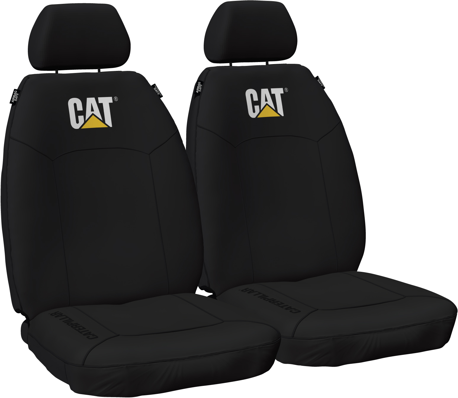 CAT Icon Design Black Premium Quality 12oz Poly / Cotton Canvas Seat Covers, Size 30, 1 Year Warranty.