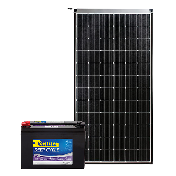 Century 105Ah AGM Deep Cycle Battery bundle with optional eArc Flexible Thin Frame Solar Panel, 5 Year Warranty.
