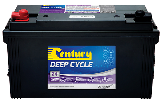 Century 12V 125Ah AGM Deep Cycle Battery, C12-125XDA, 2 Year Warranty. Century AGM Deep Cycle Batteries are the ultimate in deep cycle battery performance, designed to provide longer life and dependable deep cycling capability in the harshest of operating conditions and environments.