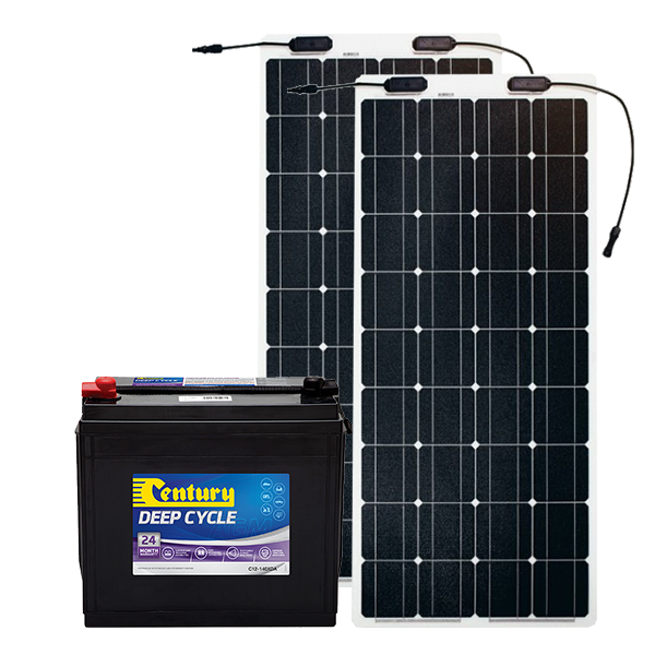 Century 140Ah AGM Deep Cycle Battery, 2 x eArc 100W Flexible Solar Panel