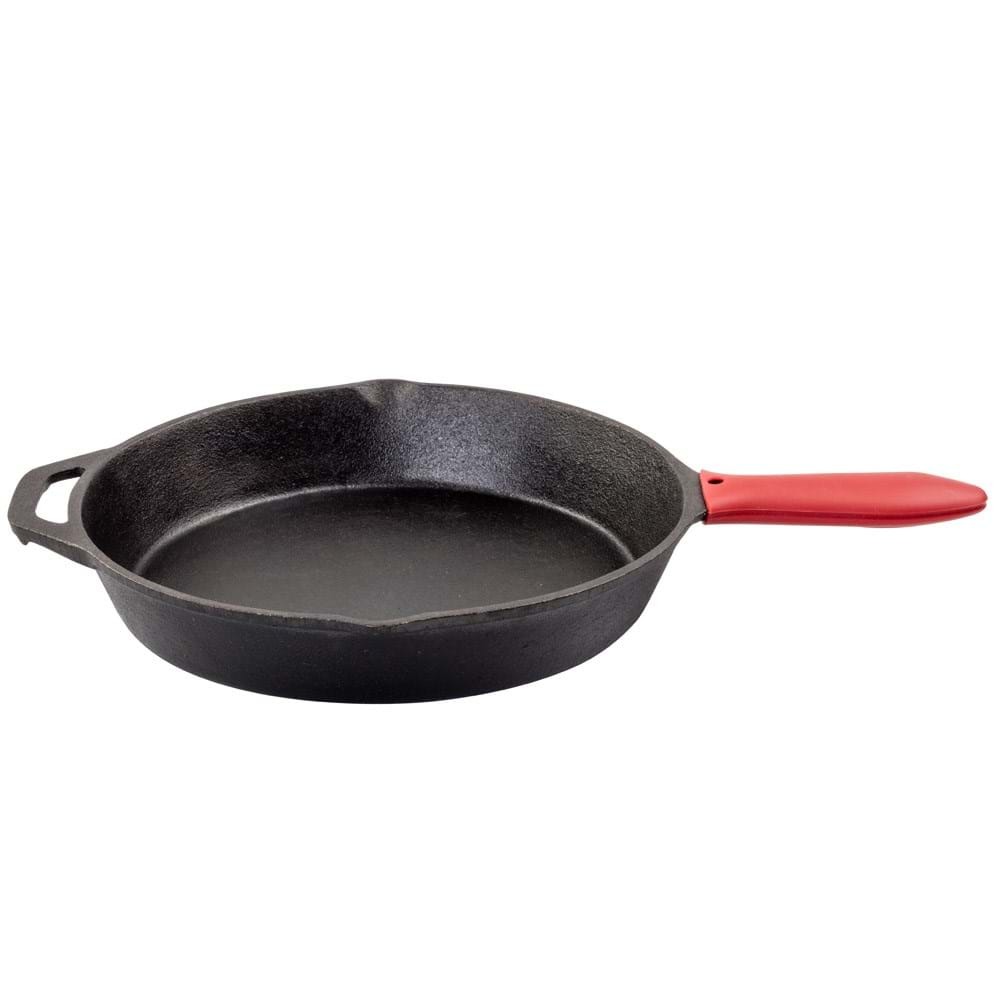 Charmate 30cm Round Cast Iron Skillet with Silicone Handle, 1 Year Warranty. The Charmate Round Cast Iron Skillet is pre-seasoned and ready for use! It has a convenient pouring lip and consistently holds heat with its thick base. Complete with a helper handle to lift skillet with two hands.