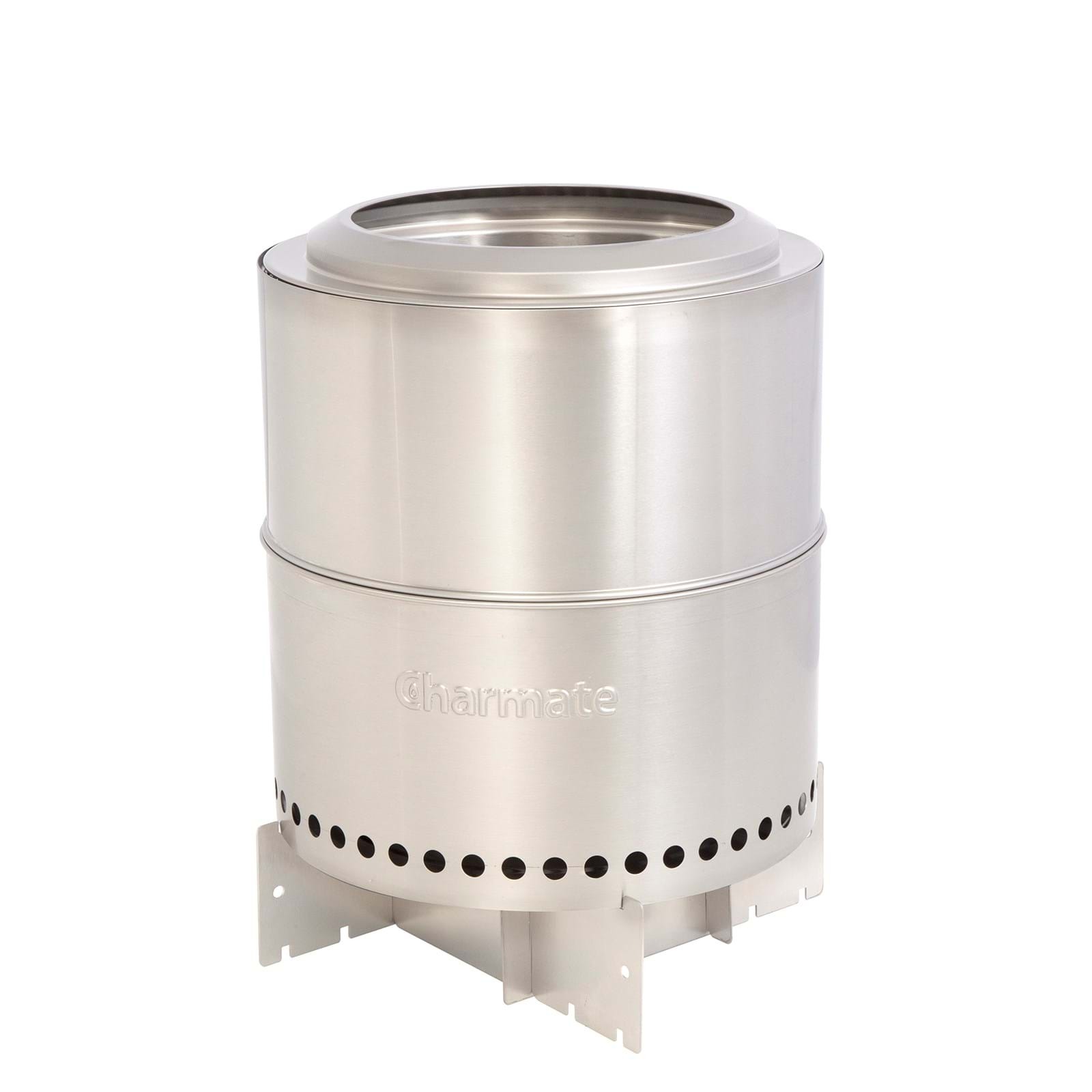 Charmate Packable Firepit & BBQ 360mm, 1 Year Warranty. The Charmate Packable Firepit & BBQ features a low smoke design which allows you to enjoy the experience of an open fire without the inconvenience of smoke. It directs oxygen into the fire, which increases the combustion and allows it to burn hotter with less fuel. It is designed to pack into itself so it can be stored in its convenient carry bag, perfect for it to travel with you wherever you go and is also easy to assemble when you need to use it. The Packable Firepit & BBQ is constructed from 304 stainless steel which is durable, lightweight and long lasting. It is versatile, with the included accessories your firepit can also be used as a BBQ or a cooktop. And the stand will protect your surfaces no matter where you are.