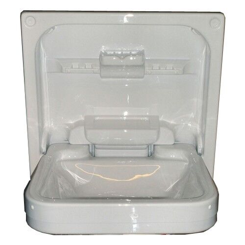 Cleo Tip Up Basin, 1 Year Warranty. The Cleo Folding Basin 660mm x 520mm (White) is a fantastic vanity/bathroom sink combo for caravans, motorhomes and boats with limited space. This ingenious sink has a basin that you can lift out, as well as an integrated soap and toothbrush holder, together with a ledge for mounting taps.