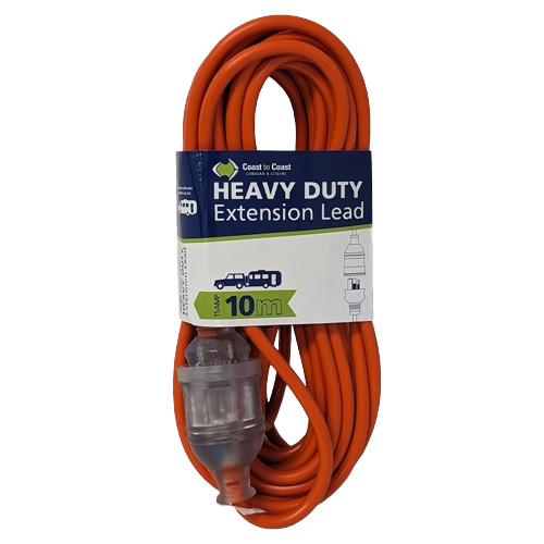 Coast 10M/15A Heavy Duty Extension Lead - Led Equipped, 1 Year Warranty. Coast RV’s latest extension leads are designed to meet the unique power demands of your RV or campsite. Our range offers you the choice of two lengths: a compact 10m lead or an extended 15m solution.