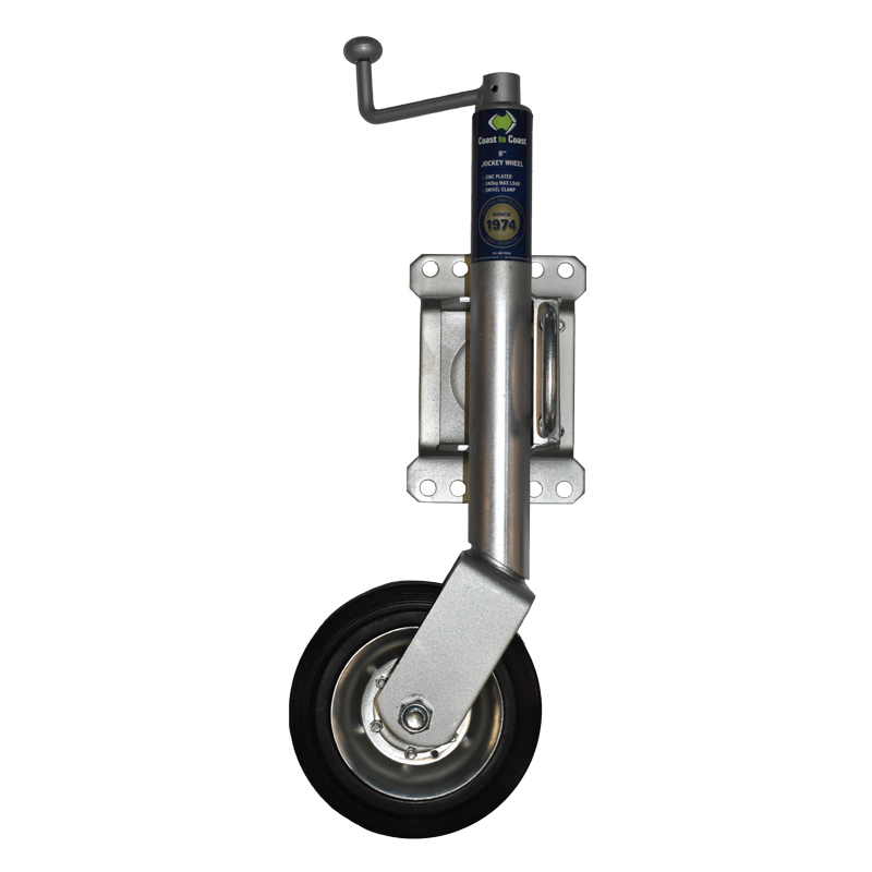 Coast 8" 340kg Jockey Wheel + Swivel Clamp - BD-03G1, 1 Year Warranty. Coast to Coast's new range of quality jockey wheels is now available. Perfectly suited for most caravan, trailer and horse float applications, this new range has all of your jockey wheel needs sorted.
