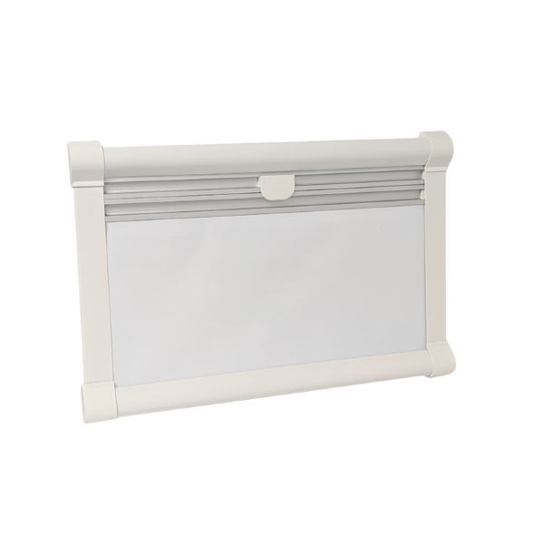 A positive closing mechanism with a solid central handle ensures the blind stays where you set it, without drifting or rattling during travel. The guided tracks keep movement smooth and aligned, helping the screen extend and retract evenly over time.