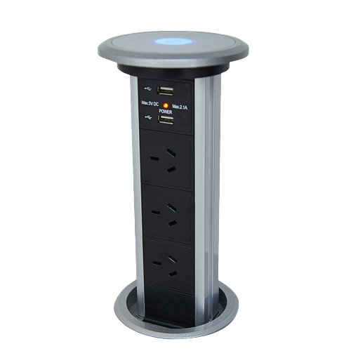 Powertower - Motorised POP-UP Powerpoint - 3x240VAC outlets + 2xUSB outlets