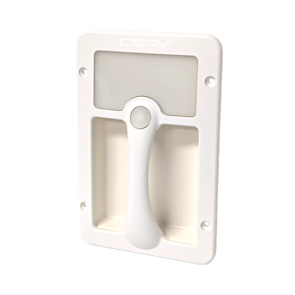 Coast RV 12V White Grab Handle Entry Light, 1 Year Warranty. Ensure safe entry to your RV with the COAST RV Replacement CAMEC Style 12V Grab Handle Entry Light, available in black, white, and chrome. This sturdy, functional light doubles as a grab handle, offering both safety and illumination when entering or exiting your vehicle. Its versatile design suits various RV styles, making it a practical and stylish upgrade.