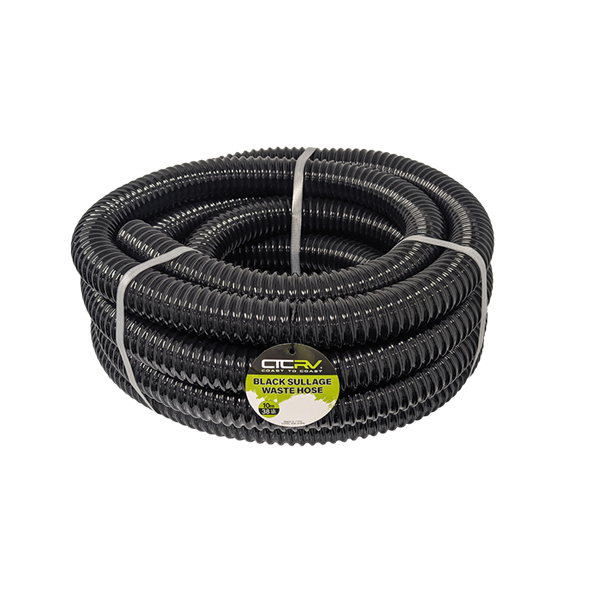 Coast RV Black Sullage Waste Hose, 10m Roll - 38mm I.D., 1 Year Warranty. The COAST RV Black Sullage Waste Hoses are designed for caravan enthusiasts seeking top-tier performance and excellent value. Available in various sizes and lengths, these hoses ensure efficient drainage of grey wastewater from your kitchen sinks and showers.