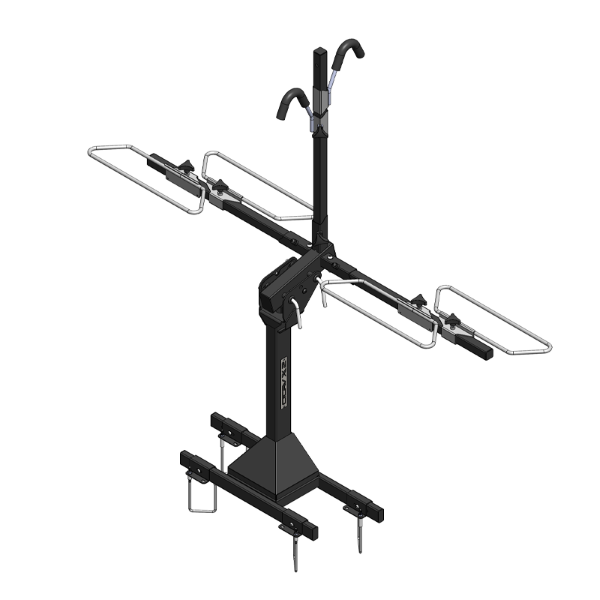 - Carries 2 bikes – elevated rack suitable for wheel sizes from 20” to 29”