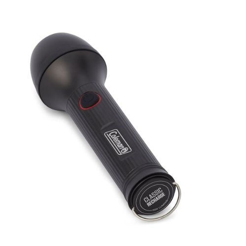 Coleman Flashlight Rechargeable Classic 1500L, 1 Year Warranty. Blaze your way to the campsite or light up your house with the Coleman Classic Recharge 1500 Lumens LED Flashlight. With a rechargeable lithium-ion battery and a durable, impact-resistant design, this flashlight is a must-have for emergency kits or camping adventures. Its lightweight, strong aluminum design has vintage ribbing inspired by our original fuel burning collections, and its updated bail handle makes it easier to carry and hang.