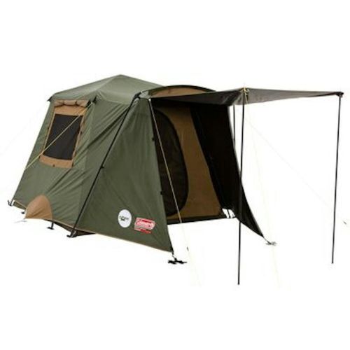 Coleman Northstar Instant Up Darkroom 4 Person Tent With LED Lighting, 1 Year Warranty. Patented Instant Up frame is lightweight and setup in 2 minutes. DarkRoom™ Technology keeps the inside dark for longer sleep-ins. It blocks out 95% of sunlight while keeping the tent cooler by up to 5°C. led strip lighting with adjustable settings is built into the tent and powered by a compact battery pack. Ripstop fabric provides extra strength and prevents ripping. Inner tent with ultra-fine mesh for ventilation and to keep the smallest bugs out. Front door can be pitched out as a two pole awning. Hook & Loop strip on awning for attaching to Deluxe Gazebos. Large feet let you step on them when extending the poles for easy setup. Circular ventilation vents can be opened to maximise airflow and keep the tent cool. Storage pockets for storing smaller items. Weathertec™ system keeps the tent dry from the harshest of conditions, includes a heavy-duty water-resistant Poly Oxford PVC floor, leak-free seams, and concealed exterior zippers. Repels up to 3,000 mm of water pressure. Illumiline™ reflective guy lines are more visible at night so you don't get tripped up in the dark.