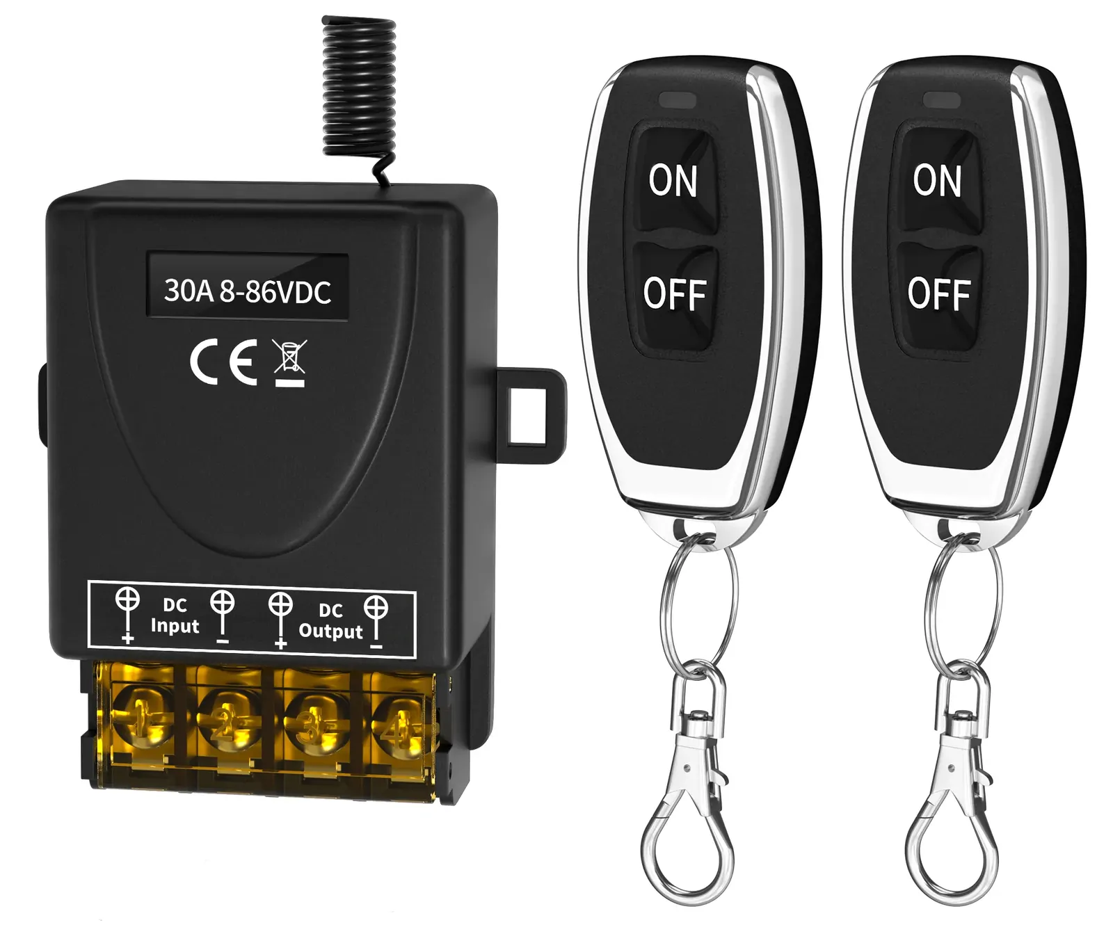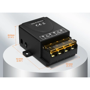 The Remote Controlled Switch is easy to install. The 12 volt feed (from the battery or fuse panel) is connected to the input terminals on the Remote Controlled Switch, and the power lead for the Cosmo, Cosmo Mini or Starlink Integration Kit is connected to the output terminals on the Remote Controlled Switch.