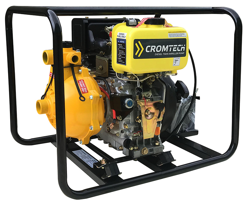 Cromtech Fire Fighting 1.5" Diesel Water Pump with Twin Impeller, 5.3hp, 1 Year Warranty. Diesel-powered fire pump for around the farm.