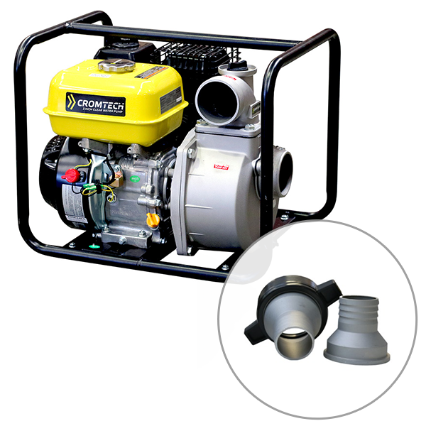 Cromtech 3" Water Transfer Pump, 1 Year Warranty. This 3 inch petrol pump is for transferring water for dams, water tanks. The pump outputs 900L/min water at a total head of 30m. It comes with a 2 inch reducer attachment allowing to use 2” hoses on your pump. Note: Using a 2” reducer will reduce maximum pump performance.