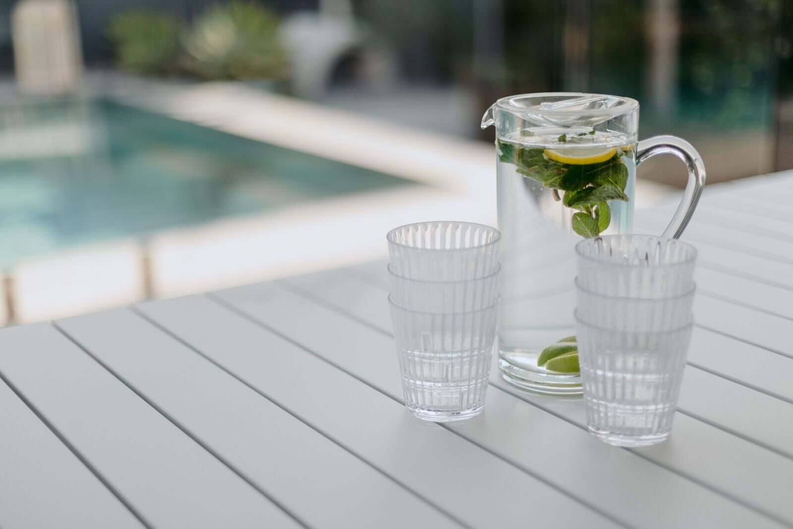 D-Still 1.6 Litre Polycarbonate Water Jug with Lid, 1 Year Warranty. The 1.6L Polycarbonate Water Jug with life is the perfect solution to shared drinks. As it is 100% unbreakable it is the perfect staple item to any group gathering whether they are indoors or outdoors. From picnics to corporate events, it's sophisticated, modern design makes it the perfect addition to any occasion.