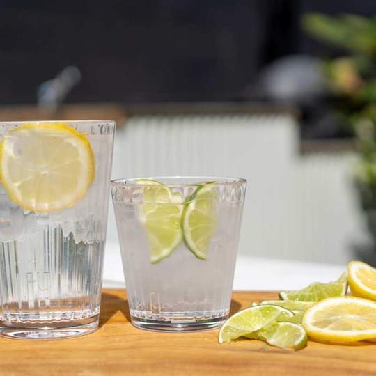 D-Still 350ml Unbreakable Stackable Tumbler, Set of 4, 1 Year Warranty. Call us 'Old Fashioned' but we love the classic vertical striped glasses. The 350ml Polycarbonate Stackable Tumblers are a staple cup at any home, venue and event. Whether your drink of choice is spirits on the rocks, cocktails, soft drinks and even water these glasses are a must have. Completely unbreakable they are a great addition to both indoor and outdoor events.