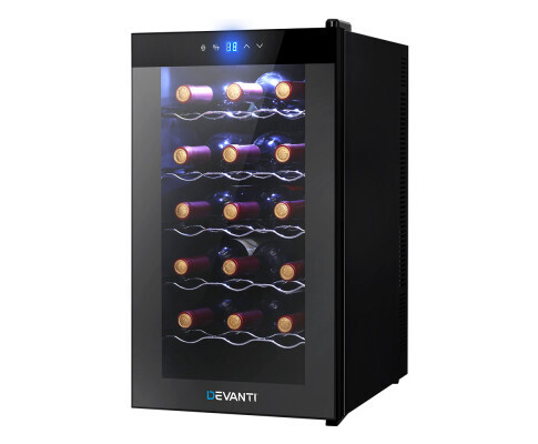 Devanti 18 Bottle Wine Cooler Fridge, 1 Year Warranty. Need a good and reliable wine cooler? Look no further than our Devanti Wine Cooler. Utilising the latest high precision thermoelectric cooling technology, our wine cooler ensures your favourite vintages are kept at their prescribed temperatures with its circulated cool air. The touch control panel makes for easy temperature adjustments and the built-in interior LEDs help you to see your wines in the best light. The stylish and compact design stores up to 18 bottles of wine in a neat and tidy shelving system. Better still, the double-glazed glass door is UV-resistant and provides excellent insulation along with the 30mm thick foam wall. The ensemble works quietly and efficiently and has a handy child-lock on its control panel for total peace of mind. Don’t trust just any product with your precious vintages, trust Devanti.