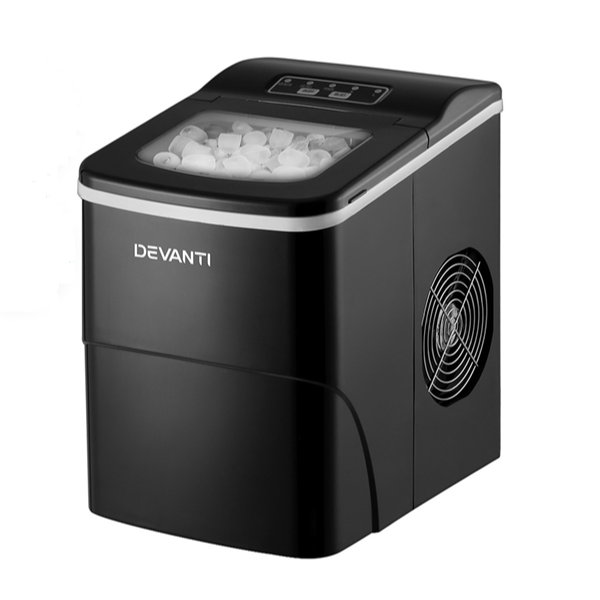 Devanti 2L Quick Portable Ice Maker, Black, 1 Year Warranty. Looking for ice in a hurry? Meet our Devanti Ice Maker! Quickly produce 9 ice cubes in 6-13 minutes, with the flexibility to choose from 2 sizes. It's loaded with smart features like water shortage and ice full alarms, plus energy-saving technology through Freon-free refrigerant and enhanced heat dissipation. Its sleek, compact design fits anywhere, and with its easy-to-use controls, you’ll be enjoying cold beverages in no time. Ice at home has never been cooler!