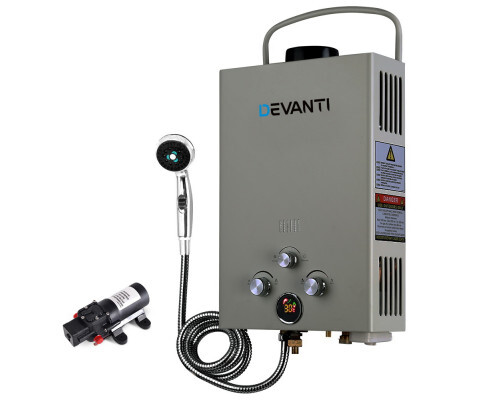 Devanti Grey Outdoor Gas Hot Water Heater with 12V Water Pump, 1 Year Warranty. Who doesn't like a just-right warm water shower anywhere, anytime? The Devanti Gas Water Heater is all you need for that instant shower gratification.