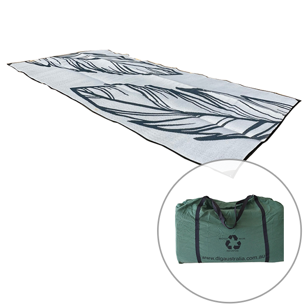 DLG Australia 240 x 480 cm Recycled Mat, Two Tone Grey with Bag, 1 Year Warranty. Introducing the Recycled Caravan Mat, crafted from 100% recycled materials, including locally sourced materials right here in Australia, this mat is a testament to the commitment to the environment. These mats are sand-free, dirt-free, waterproof, and UV treated. The unbeatable prices and Aussie-owned textile recycling background make us the best on the market.