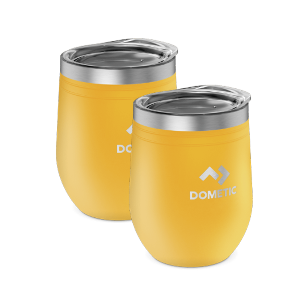 Dometic 300ml Glow Wine Tumbler, 2 Pack,1 Year Warranty. This insulated vacuum sealed wine tumbler keeps wine at the perfect temperature. Made from robust stainless steel, you can just enjoy the perfect moment and forget everything around. The plastic lid has a splash resistant press-fit function to avoid big spills. The lid also comes with a removable gasket for easy cleaning. Splash-proof, dishwasher safe and BPA Free.