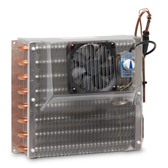 The Dometic Air circulating deep-freeze evaporator VD16 for Series 90 is tailor-made for deep freezing! This air circulating deep-freeze evaporator is designed for installation in both chest and upright refrigerators. A maximum cooling capacity of 130 l with 50 mm PU insulation – it offers optimal cooling at minimal power. Self-sealing valve couplings simplify installation.