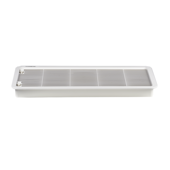 Dometic Fridge Large Vent and Frame, LS300. White frame and grill. Dometic large wall vent to provide ventilation for RV fridges (both compressor and absorption RV fridges).