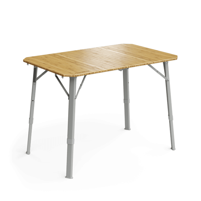 Dometic GO Compact Camp Table, 1 Year Warranty. Dometic’s CMP-T4 Table features a strong, lightweight bamboo surface and sturdy aluminium legs that fold down to fit compactly in your vehicle for simple transport. Choose from three heights for multiple uses outdoors (coffee table, kids’ table, dining/prep).