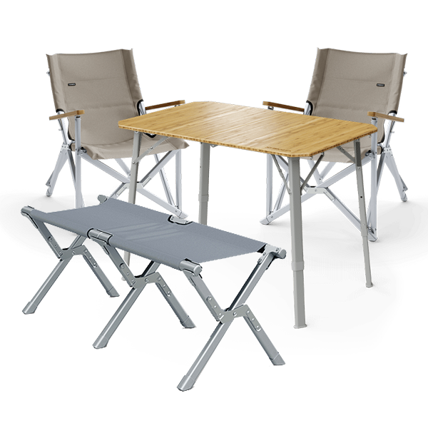 Dometic GO Compact Camp Table with Camp Bench & 2 x Ash Camp Chair