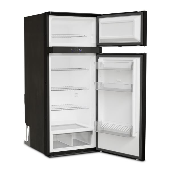 Dometic RCD10.5XES Dual Hinge Fridge & Freezer 200 Litre, 3 Year Warranty. The Dometic RCD10.5XES Dual Hinge 200L: quiet, efficient, perfect for keeping your food and drinks cold on every RV or caravan trip. Designed for smarter use of space, the Dometic RCD10.5XES Dual Hinge is powered by compressor cooling technology featuring Silent, Turbo and Performance cooling modes. It comes with an advanced smart door that can adapt to different layouts allowing you to store food and drinks conveniently. The refrigerator comes with a versatile interior and a customisable decor panel that can change to suit all your needs, perfect for your travels.