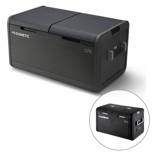 Dometic CFX5 95DZ 94 Litre Portable Dual Zone Fridge & Freezer, 5 Year Warranty. The Dometic cooling system is equipped with a powerful VMSO3.5 compressor, delivering exceptional performance and efficiency. Featuring a high-resolution colour display, it offers an intuitive interface for easy operation. With Bluetooth and WiFi capabilities, you can control the system remotely and monitor its temperature and performance via the Dometic Mobile Cooling app. The innovative gasket seal technology ensures enhanced insulation and energy efficiency, making this cooling solution ideal for both personal and professional use. Enjoy precise temperature control and superior reliability in one advanced package.