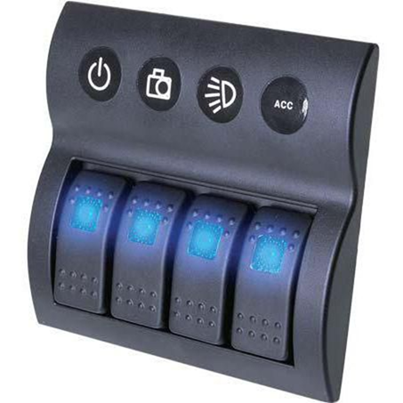Drivetech 4x4 4 Switch Panel, 1 Year Warranty. Drivetech 4x4 Rocker 4 Switch Panel On - Off - SPST 12 or 24V Blue Illumination (Contacts Rated 20A @ 12V)