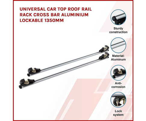 - 1 x Universal Car Top Roof Rail Rack Cross Bar Aluminium Lockable 1350MM