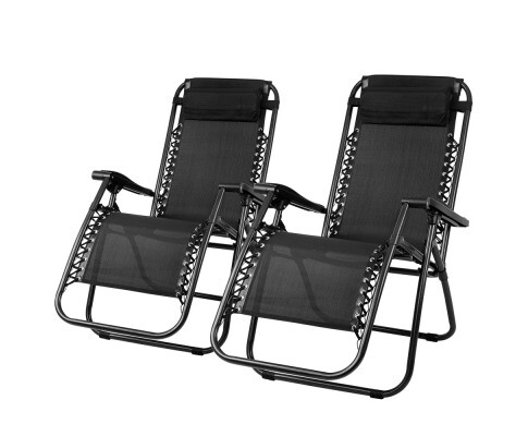 DZ Black Zero Gravity Outdoor Reclining Chairs - set of two, 1 Year Warranty. Despite the name, our lightweight Zero Gravity Recliner can easily take up to 150kg of body weight under gravity. After all, it’s made for your reclining enjoyment all the time.