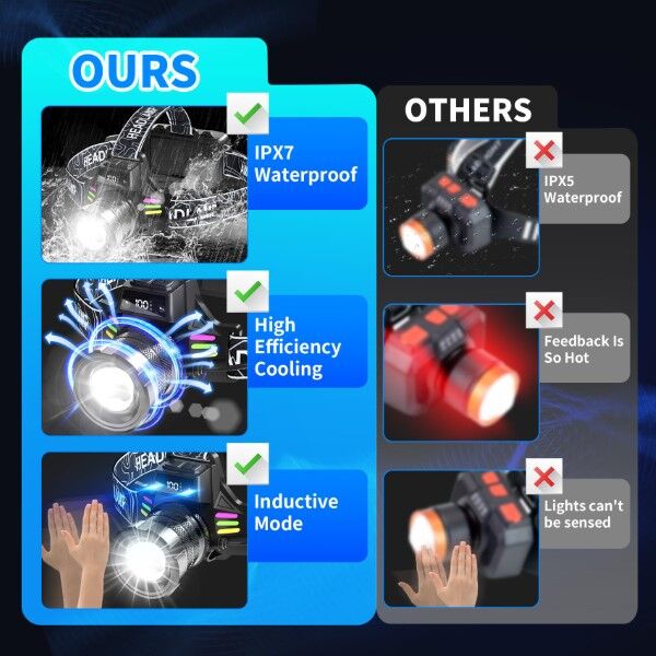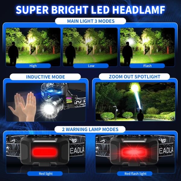 - 7 Lighting Modes: Includes high, low, flash, SOS, red light, red flash, and induction mode for versatile use.