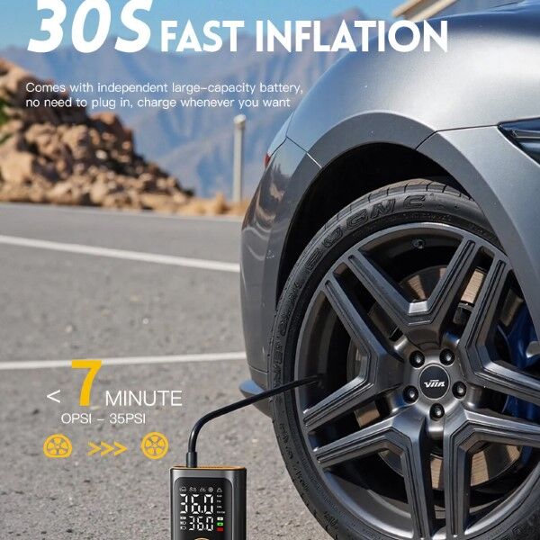 - High-Power Performance: 60W motor with 2x2000mAh battery enables rapid inflation (up to 35PSI in under 7 minutes).