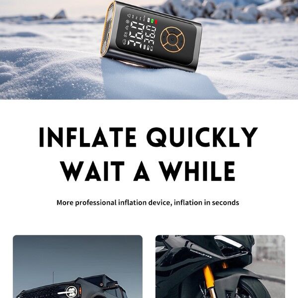 - 5 Preset Inflation Modes: Choose from car, motorcycle, bicycle, ball, or custom settings for quick setup.