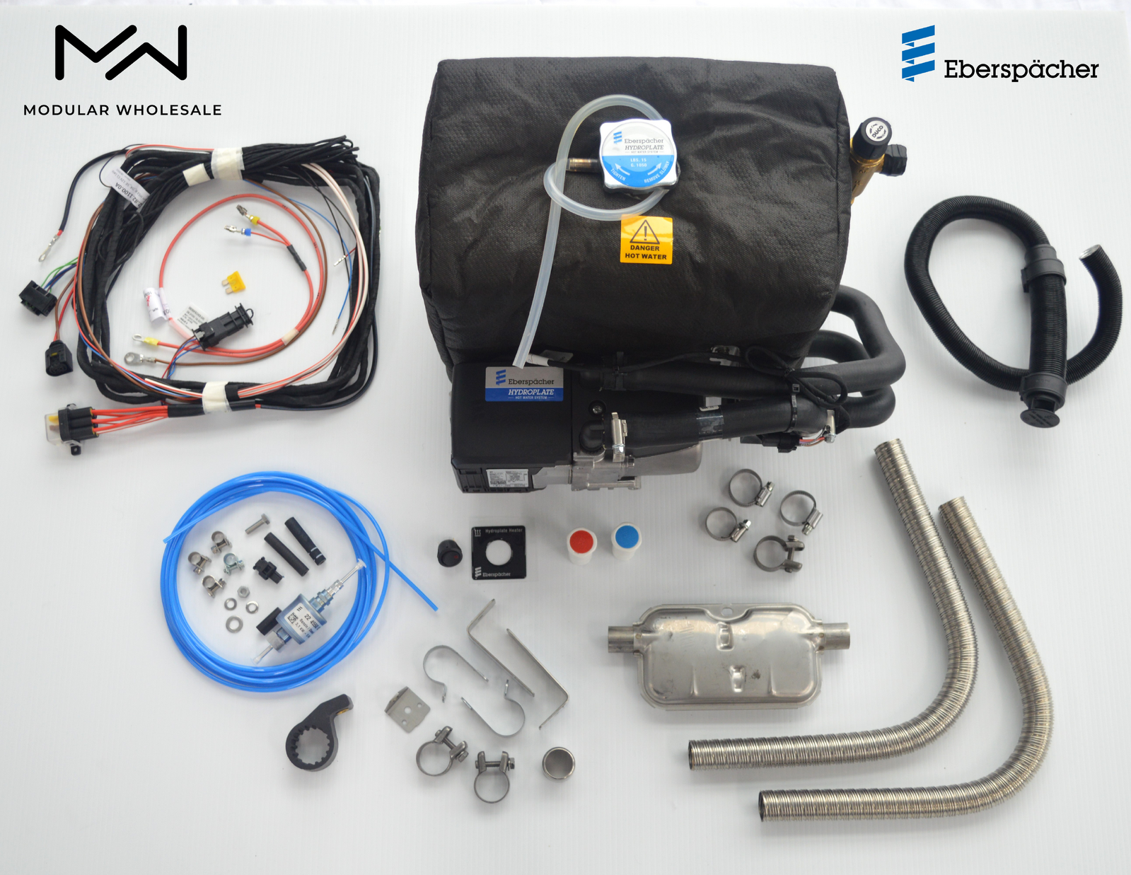 Eberspacher Airtronic HS3 D5E Diesel Hot Water System, 2 Year Warranty. This Eberspächer Hydroplate system is suitable for installation into Motorhome, Caravan, Welfare, Utility and Messing vehicle applications. It utilises either a separate diesel fuel tank or the vehicles own diesel tank. It also requires a 12V DC power supply. The Hydroplate system is generally used when stationary, but can be used whilst on the move. Once installed all you need to do is switch it on and after approximately 10–15 minutes, the Hydroplate produces a constant flow of hot water at 40°C, to be used for washing and showering. The continuity of hot water supply is dependent on the flow rate of the domestic water pump, ideally being between 5 and 10 litres per minute. We can offer optional fan matrix units, that can be used to supply ducted hot air dependent on the specific application. We would welcome the opportunity to discuss your specific requirements in more detail.