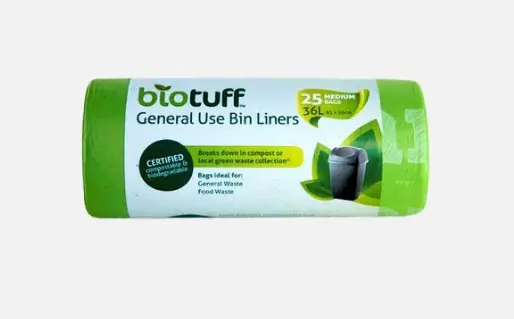 Ecoflo Bio Bin Bags, 36 Litres, 1 Year Warranty. Domestic Biodegradable and compostable rubbish bin bag liners, manufactured using renewable resources, plant base thermo plastic corn starch resins.