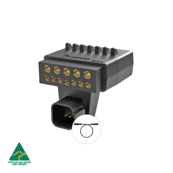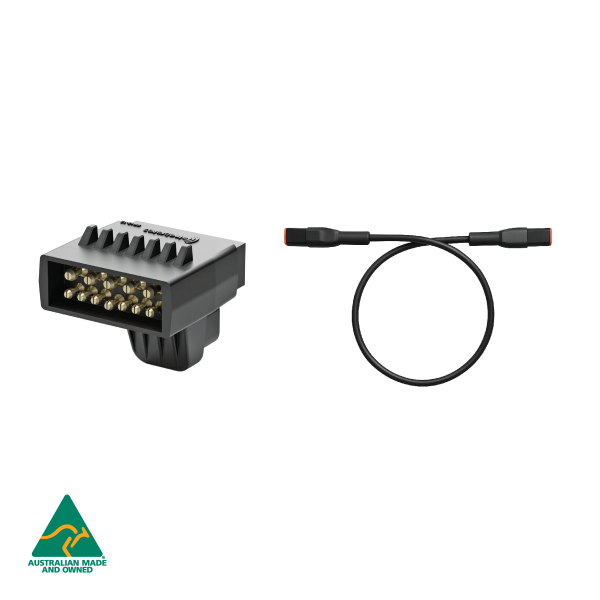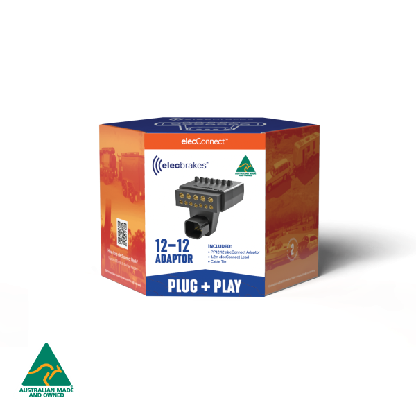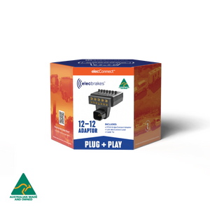 Elecbrakes Plug & Play - Adapter 12 Flat to 12 Flat Socket, 2 Year Warranty. The elecConnect PP12-12 adaptor represents the next step in our plug + play system allowing for an even easier and better looking install. The PP12-12 enables connection to your Elecbrakes brake controller for 12 pin vehicle to 12 pin trailer configurations without the need for custom wiring.