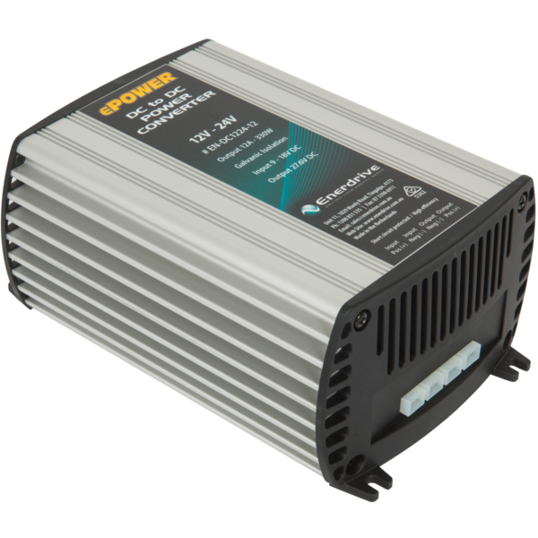 Enerdrive 12V-24V 12A DC to DC Converter with Galvanic Isolation Output 27.6V, 5 Year Warranty. These compact and rugged DC to DC converters with galvanic isolation units omit little heat making them safe and convenient for installation where space is hard to come by. Enerdrive’s DC to DC galvanic isolation converters use Switch Mode technology with protection against over-current / overload, over-heating, over-voltage and reverse polarity connection. Units can be paralleled multiple times to increase overall output. Models with 27.6V output can also be used as a 24V battery charger.