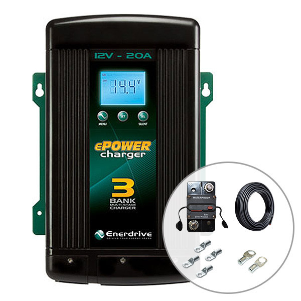 The Enerdrive ePOWER 20A Battery Charger is a fully automatic, “set and forget” charger. It is designed to quickly and accurately recharge your batteries using algorithms that help maximise service life. Multistage smart charging technology enables the charger to be connected to your battery banks permanently.