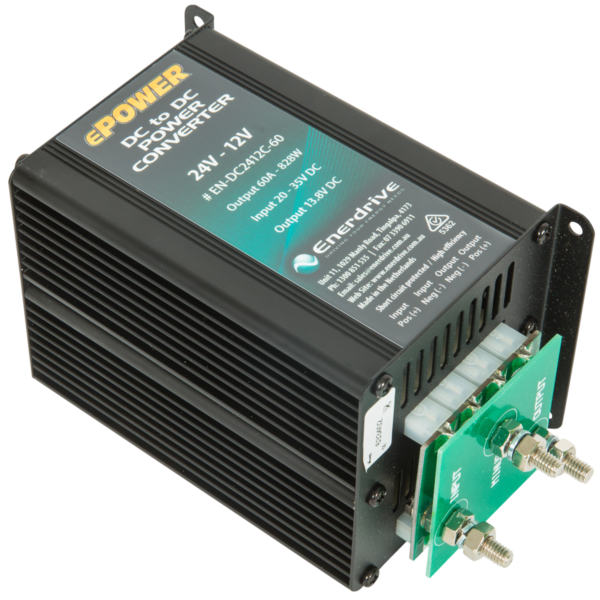 Enerdrive 24V-12V 60A DC to DC Converter Non Isolated Output 13.8V, 5 Year Warranty. Poor power supply to your on-board 12V equipment can cause major damage and result in costly replacement of electronic appliances. By installing a ePOWER DC to DC converter you will avoid damage and save the headache of equipment replacement. All models with 13,8 V output can also be used as a 12 V battery charger. Units can be paralleled multiple times to increase overall output.