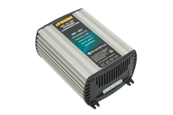 Enerdrive 48V-48V 6.2A DC to DC Converter with Galvanic Isolation, 5 Year Warranty. These compact and rugged DC to DC converters with galvanic isolation units omit little heat making them safe and convenient for installation where space is hard to come by. Enerdrive’s DC to DC galvanic isolation converters use Switch Mode technology with protection against over-current / overload, over-heating, over-voltage and reverse polarity connection. Units can be paralleled multiple times to increase overall output. Models with 27.6V output can also be used as a 24V battery charger.